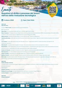 Il 4 ottobre si svolgerà una giornata di approfondimento dedicata al diritto e al processo del lavoro, focalizzando l’attenzione sui temi dell’innovazione e sull’impatto delle nuove tecnologie sul diritto e sul processo del lavoro.