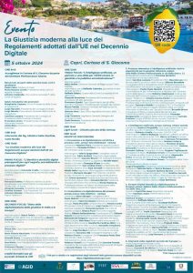 La giornata del 5 ottobre sarà suddivisa in sessioni tematiche e laboratori di approfondimento, con la partecipazione di magistrati, avvocati, studiosi della giustizia digitale e rappresentanti delle istituzioni europee e nazionali. Maggiori dettagli sono disponibili nella locandina allegata e sul sito dedicato (https://www.digitalizzazionecapri.com/).