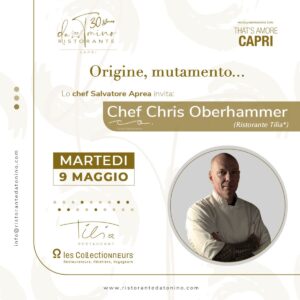 Lo chef Salvatore Aprea, presidente di That’s Amore Capri, tra i promotori e ideatori della rassegna che unisce il meglio della gastronomia e dello spettacolo ha invitato questa volta un maestro del gusto dalle Dolomiti, lo chef Chris Oberhammer, stella Michelin, che porta a Capri i sapori della sua cucina dalla Val di Landro davanti alle tre Cime di Lavaredo, dove ha sede Tilia, il ristorante stellato dal 2007.
