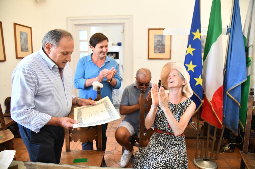 Quest’estate ricevette l’onorificenza e l’attestato di cittadina illustre dalle mani del sindaco Marino Lembo alla presenza del vicesindaco Ciro Lembo e della giunta municipale. Madrina della cerimonia la giornalista Januaria Piromallo, in una sala affollata di amici e capresi che vollero festeggiare Martha De Laurentiis che era diventata una di loro, purtroppo è stata quella l’ultima volta che Martha ha trascorso sull’isola alcuni giorni felici come felici erano quelli che ha vissuto per anni nel buen retiro Grand Hotel Quisisana che consideravano la loro casa caprese e dove Martha, Dino, Carolina, e Dina trascorrevano i mesi della loro permanenza in Italia. E insieme ai capresi piange la scomparsa di un’amica vera, quasi una sorella che Anna Maria Boniello per anni ha avuto il privilegio di conoscere e trascorrere con Martha, zio Dino e le bambine, così le ama ancora chiamare Anna Maria. “Ciao Martha non dimenticherò mai il tuo coinvolgente e radioso sorriso, e l’amore che nutrivi per la tua famiglia, gli amici e per Capri”. Anna Maria