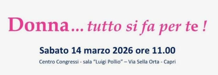 Sabato 14 marzo 2026, dalle ore 11, presso la Sala “Luigi Pollio” del Centro Congressi di Capri, si terrà una giornata dedicata alla prevenzione oncologica promossa dalla Lega Italiana per la Lotta contro i Tumori (LILT) , rappresentata sull’isola da Anna Lembo e Mariapina Cosentino, con il patrocinio dei comuni di Capri e Anacapri. L’iniziativa, dal titolo “Donna… tutto si fa per te!”, sarà moderata dalla giornalista Annamaria Boniello e costituirà un importante momento di informazione e sensibilizzazione sui temi della diagnosi precoce del tumore al seno e della prevenzione dermatologica legata ai nei e ai melanomi. Dopo i saluti istituzionali, i lavori entreranno nel vivo con la sessione dedicata alla prevenzione senologica: la dott.ssa Annamaria Cerrotta offrirà consigli clinici utili per la diagnosi precoce, mentre la dott.ssa Maria Luisa Barretta approfondirà il tema della diagnostica senologica e dell’importanza dei controlli periodici. Seguirà la sezione “Occhio al neo”, con l’intervento del Dott. Corrado Caracò, che fornirà indicazioni pratiche per il riconoscimento dei segnali sospetti e per la prevenzione dei melanomi, sottolineando il valore della diagnosi tempestiva. Le conclusioni saranno affidate al presidente della LILT, il Prof. Adolfo D’Errico Gallipoli, che ribadirà il ruolo centrale della cultura della prevenzione nella tutela della salute femminile.