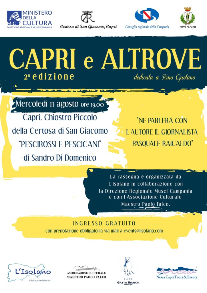 Capri e Altrove, mercoledì 11 agosto presentazione di “Pescirossi e pescicani” di Sandro Di Domenico