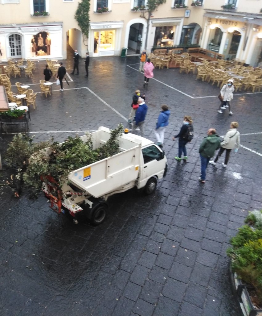 Capri – Il vento che da ieri ha investito l’isola di Capri con forti e improvviso raffiche ha abbattuto in via Longano uno dei tanti alberi che adornano le viuzze di Capri, a pochi metri dalla Piazzetta. Fortunatamente viste le pessime condizioni di tempo, nessuno passava per cui la pianta è caduta senza fari danni a cose e persone ma privando del verde una delle caratteristiche stradine del Centro Storico. L’albero è stato immediatamente rimosso dal personale della Capri Servizi sotto gli occhi curiosi dei pochissimi passanti fra cui alcuni turisti che attraversavano una Piazzetta deserta per rientrare in albergo appena smesso il violento temporale caratterizzato da vento a raffiche e bombe d’acqua.