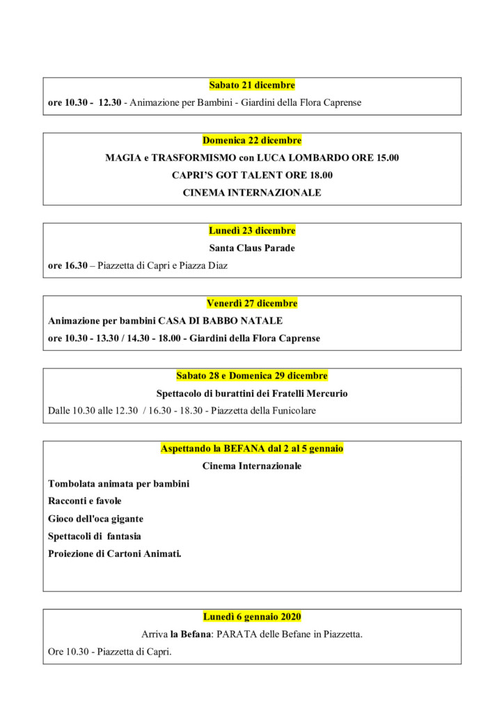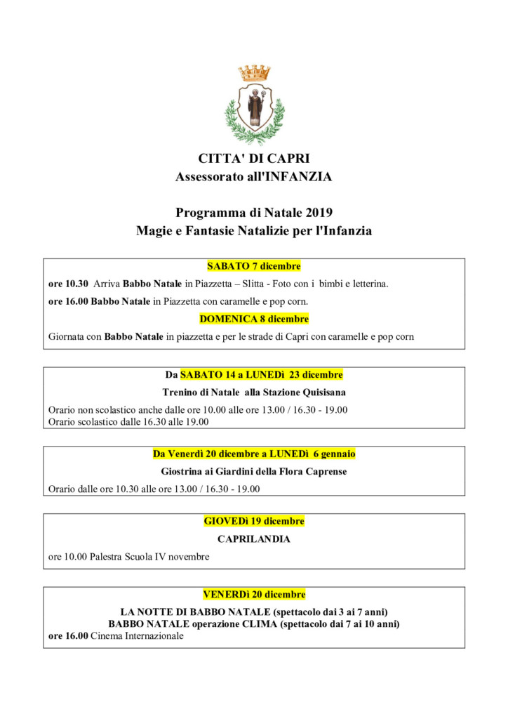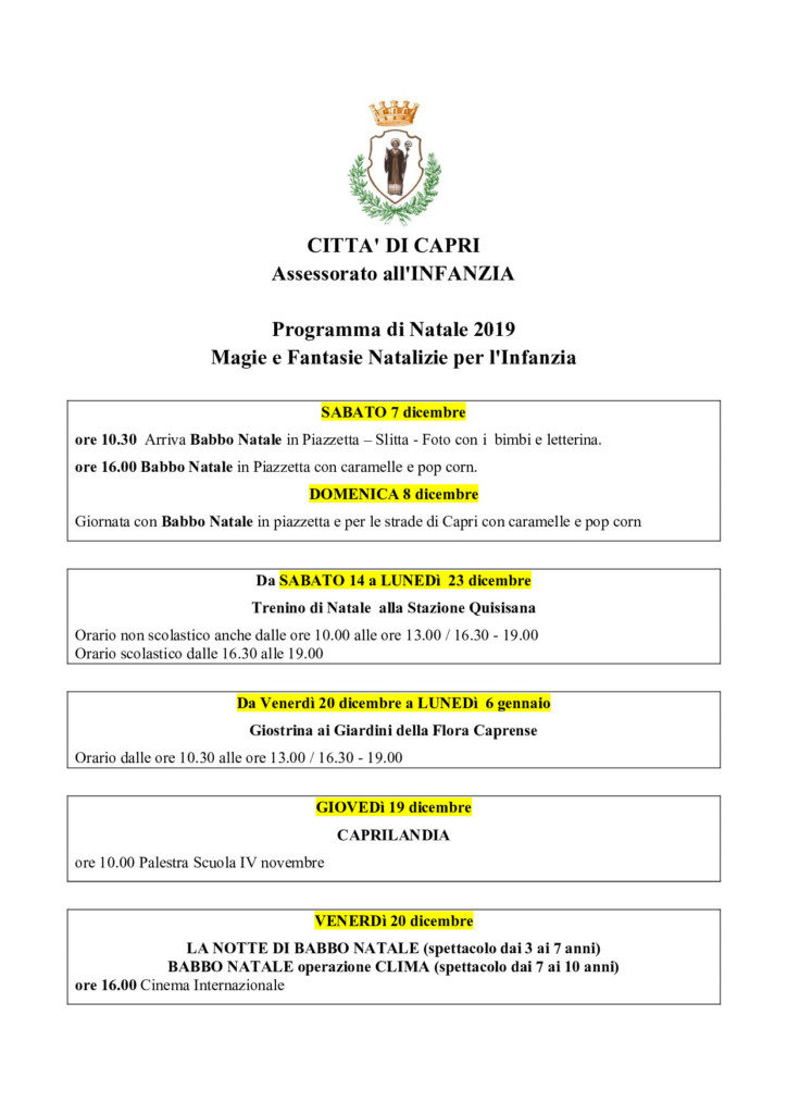 L’Assessorato all’Infanzia della Città di capri guidato da Salvatore Ciuccio ha presentato il programma degli appuntamenti di Natale dedicati ai bambini: