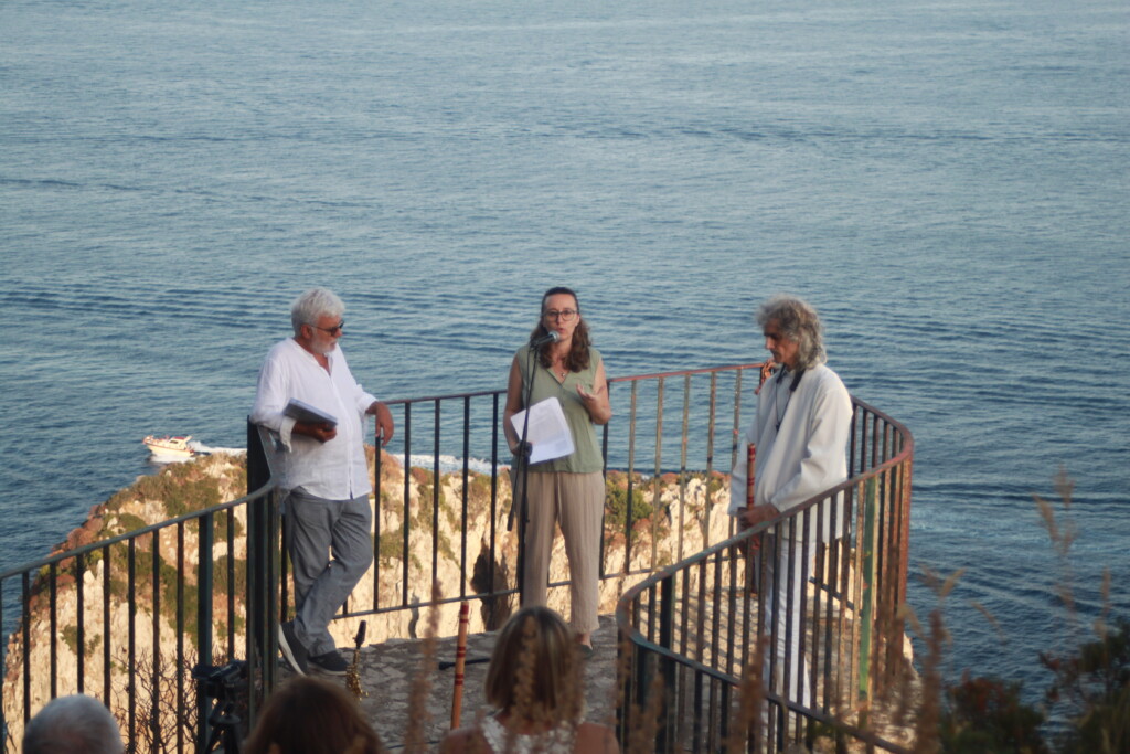 L’inno alla Natura di Al Martino con sue musiche originali ha accompagnato la lettura di alcune liriche tratte dalle Rime dantesche e estratti dai canti I e XXVI dell’Inferno interpretate dall’istrionico Mario Staiano. Il personaggio di Ulisse richiamato nelle letture ha un legame particolare anche con il luogo che ha ospitato l’evento: la roccia del Pizzolungo un tempo veniva chiamato “Polifemo” proprio richiamando la storia di Ulisse e i Ciclopi che i viaggiatori stranieri amavano ambientare a Capri. La prof.ssa Manuela Schiano ha introdotto il reading presentando i temi e lo stile delle opere del Sommo Poeta e ha chiuso l’evento leggendo un estratto dell’Epistola XII sull’esilio dantesco.