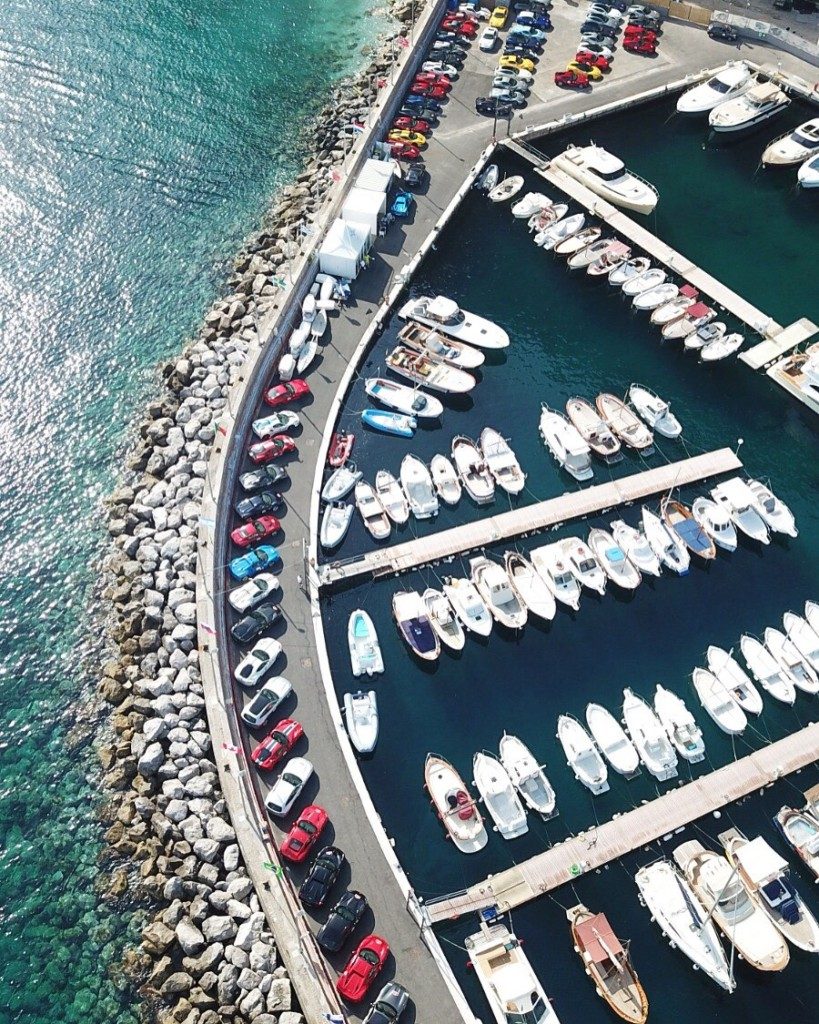 Capri. Scatti suggestivi da drone, del fotografo Andrea Costa, sui preparativi della sfilata Ferrari in occasione dell’ultima tappa del Ferrari Cavalcade Tour 2019, per le strade di Capri.
