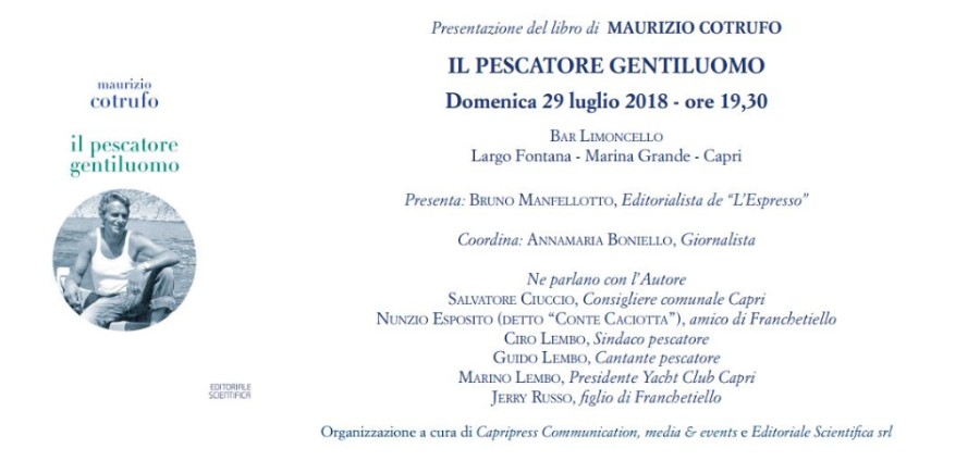 Domenica 29 luglio alle 19.30 presso il Bar Limoncello in Largo Fontana a Marina Grande sarà presentato il libro del Prof. Maurizio Cotrufo “Il pescatore gentiluomo” (Editoriale Scientifica – Napoli).