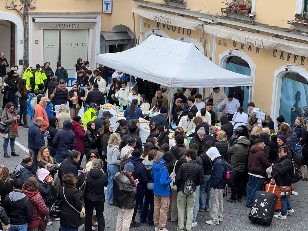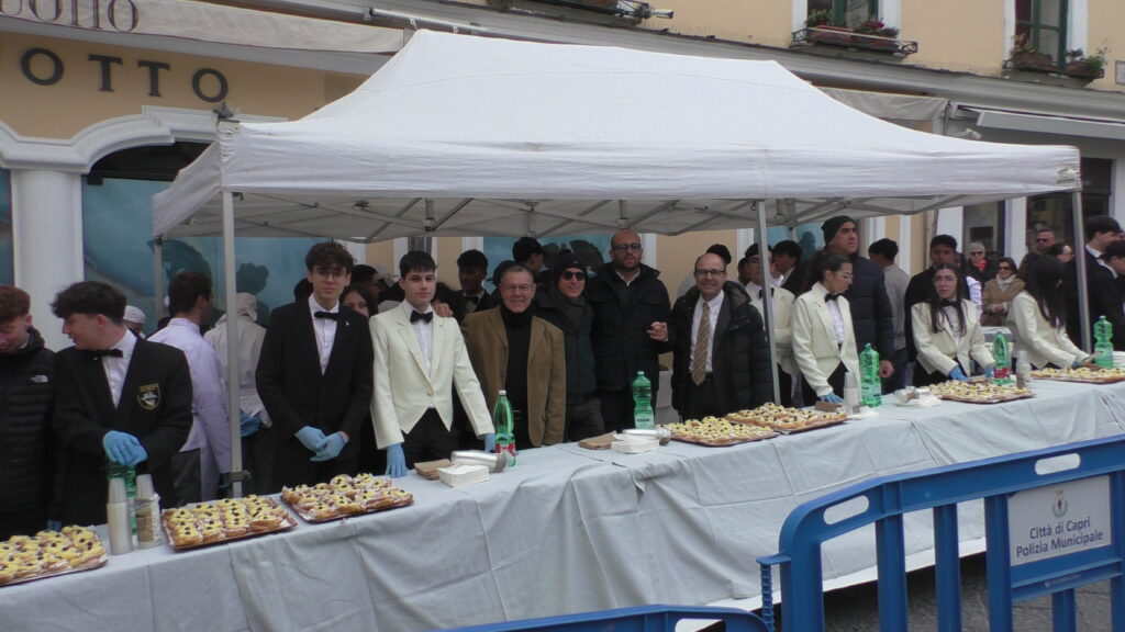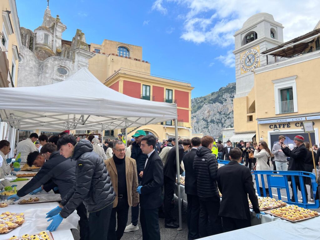 San Giuseppe a Capri torna la tradizione della zeppolata in piazzetta. Il comune di Capri e l’Istituto Alberghiero “Axel Munthe” di Capri riportano nel salotto del mondo l’annuale appuntamento in occasione delle feste di San Giuseppe e del Papà del 19 marzo. Gli studenti della scuola alberghiera caprese per lo speciale evento hanno preparato circa tremila zeppole “live”, nella doppia versione fritta e al forno per addolcire il palato di isolani e turisti. “Anche quest’anno torna un evento molto atteso da cittadini e visitatori dell’isola, la zeppolata di San Giuseppe in Piazza – ha detto il sindaco di Capri Paolo Falco – un momento di incontro che unisce dolcezza, memoria e convivialità, mantenendo viva una tradizione radicata nella nostra cultura, grazie al coinvolgimento degli studenti dell’Istituto Alberghiero Axel Munthe”. La zeppolata in piazzetta è un evento che venne organizzato per la prima volta nel 2015 dal comune di Capri per celebrare il cinquantenario dell’Istituto Alberghiero riproponendo nell’ambito della tutela delle tradizioni locali la medesima manifestazione che si tenne nel 1965 in piazza Umberto I con gli studenti di allora frequentanti la neonata scuola alberghiera caprese.