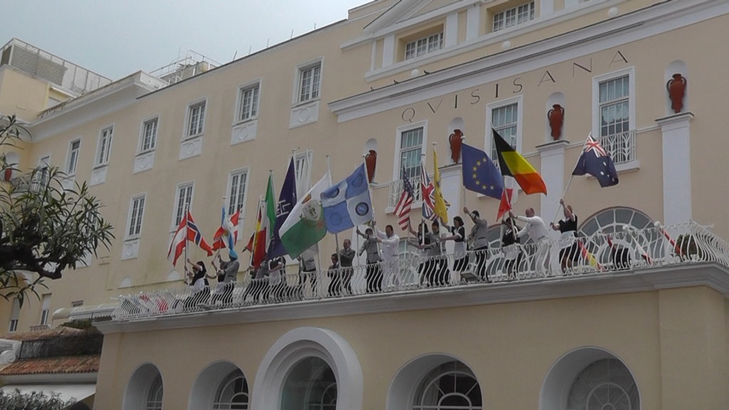 Mariano Della Corte – CAPRI – Puntuale a mezzogiorno si è ripetuto oggi il rito dell’alzabandiera al grand hotel Quisisana, che apre il lungo ponte pasquale sull’isola di Capri. Una folla di turisti e residenti, autorità civili e militari, il sindaco di Capri, i rappresentanti delle associazioni ha salutato con un forte applauso il momento in cui sono state issate le bandiere sulla terrazza del Quisisana. A fare gli onori di casa la famiglia Morgano, proprietaria dell’albergo 5 stelle lusso. Luigi Raia, direttore generale dell’Agenzia regionale del turismo, presente alla cerimonia, ha detto: «Oggi con il rito dell’alzabandiera a Capri diamo ufficialmente il via alla stagione turistica dell’intera regione Campania».