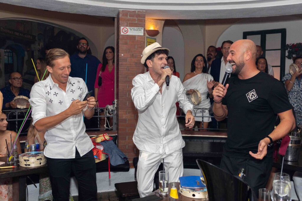 Leiva non ha resistito al ritmo della band ed ha voluto intonare alcuni successi come “Ai se eu te pego” ed altre canzoni brasiliane. Tanta musica, risate e piccoli live show con i razzi al tavolo di Reina ed uno speciale trono da gladiatore per Leiva, per una Capri by night da ricordare.
