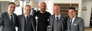 Mariano Della Corte – Capri. Dopo la delusione della sconfitta contro i viola, un gruppetto di giocatori azzurri ha fatto tappa a Capri, per trascorrere una serata in compagnia delle famiglie e amici nel buen retiro del Grand Hotel Quisisana. Ad arrivare nelle prime ore della mattinata di ieri sull’isola azzurra sono stati Christian Maggio e Raul Albiol che hanno raggiunto le mogli arrivate la sera precedente insieme ai bambini. Ultimo a sbarcare sull’isola è stato, ieri sera, il portiere del Napoli, il gigante Josè Manuel Reina, insieme alla moglie Yolanda Ruiz che prima di arrivare in Hotel si è fermato per una lunga sosta relax al Gran Caffè in Piazzetta insieme alla moglie ed altri amici spagnoli, per raggiungere poi i suoi compagni di squadra che l’attendevano al Grand Hotel Quisisisana, per continuare insieme la serata. Una breve pausa prima di riprendere le fatiche di fine campionato e ripartire stamattina con uno dei primi aliscafi, senza negarsi alla foto ricordo con lo staff dei concierge dell’Hotel Quisisana, Marco, Antonio, Gianluca e Antonio.