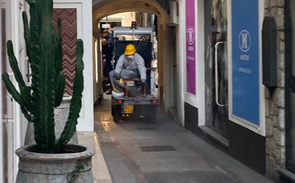 La Capri Servizi, municipalizzata della Città di Capri, continua l’attività di sanificazione del territorio con due squadre di venti operatori ecologici, in gran parte provenienti dalla terraferma, che si alternano e non si incrociano mai e per i quali sono stati creati appositi spogliatoi. Gli operatori si muovono con apposita attrezzatura sia nelle stradine del centro storico che nelle aree più aperte.