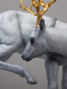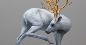 ” Forest Guardian” ( il Custode della foresta) è una scultura iperrealista del duo spagnolo Coderch & Malavia, raffigurante un cervo dalle corna ramificate d’oro in bronzo.