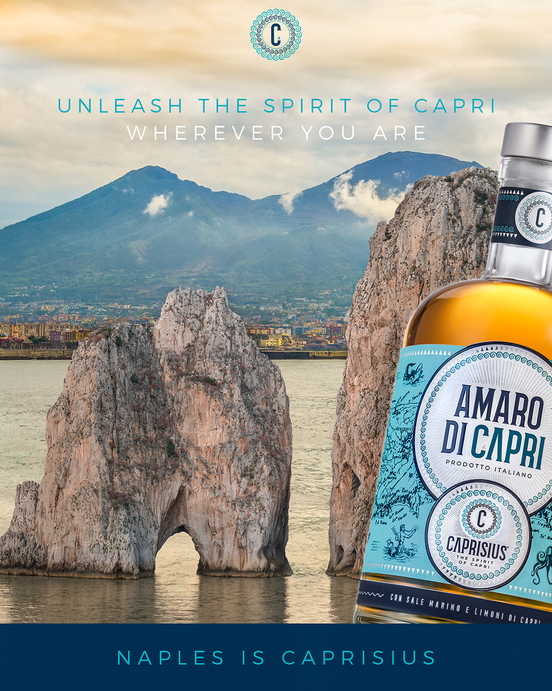È a Napoli che Caprisius intende piantare le radici del suo nuovo arrivato, l’Amaro di Capri, un prodotto destinato a rivoluzionare l’idea classica di amaro, realizzato esclusivamente con botaniche raccolte a Capri, dal colore chiaro ambrato, con profumi floreali mediterranei, sentori di zagara, limoni, fichi e sale marino.