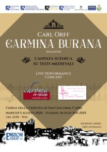 CARL ORFF, CARMINA BURANA, CANTATA SCENICA SU TESTI MEDIEVALI, CHIESA DELLA CERTOSA DI SAN GIACOMO, 5 agosto ore 21:00