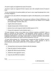 ➢ di non aver beneficiato di contributi pubblici per l’anno in corso da qualunque Ente erogati a titolo di sostegno alloggiativo.