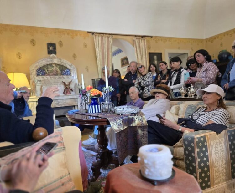 “Casa Eliana” nelle passeggiate culturali organizzate questa primavera, nel programma del Centro Caprense Ignazio Cerio, la più antica istituzione culturale dell’isola fondata nel 1947 da Edwin Cerio e Mabel Norman per valorizzare la storia, la natura e l’arte di Capri, intitolata al medico e naturalista Ignazio Cerio. Il primo appuntamento che si è svolto domenica 26 aprile, ha visto una grande partecipazione di pubblico, tra residenti e turisti, che hanno preso parte alla passeggiata con la guida speciale dell’architetto Andrea Nastri, scrittore ed esperto divulgatore della storia di Capri. Casa Eliana, una residenza di straordinario valore architettonico situata nella zona nord-est dell’isola, a breve distanza da Villa Lysis. “Edificata nel 1927 da Marguerite Hoffman, la villa rappresenta un raro esempio di dialogo tra diverse correnti estetiche. Progettata dall’ingegnere Angelo De Angelis con un sobrio stile mediterraneo, la struttura svela al suo interno il genio del pittore e incisore tedesco Melchior Lechter, che ne curò gli arredi secondo i canoni dello Jugendstil, arricchendoli con suggestivi rimandi orientali. Il risultato è un equilibrio originale che fonde la tradizione caprese con l’eclettismo europeo di primo Novecento – è stato raccontato ai partecipanti dall’Architetto Nastri – La peculiarità progettuale dell’edificio, caratterizzato da una pianta a forma di “T”, è stata illustrata dall’architetto Nastri: una concezione architettonica pensata per massimizzare la luminosità in ogni stagione, permettendo di abbracciare visivamente con un solo sguardo l’intera disposizione delle aperture”. La visita è stata resa speciale dalla generosa accoglienza della famiglia Salvia, che oggi custodisce la dimora come una curata casa museo. Gli ospiti hanno potuto ammirare, oltre ai raffinati ambienti, il pregevole lavoro di restauro che ha restituito l’antico splendore all’edificio tra cimeli d’epoca e oggettistica d’arte di rara bellezza, in cui spicca il camino. Con questa prima visita il Centro Caprense Ignazio Cerio ha confermato l’importanza di iniziative volte alla valorizzazione e alla riscoperta dei tesori nascosti dell’isola di Capri.