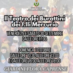 Città di Capri, assessorato all’infanzia: Il Teatro dei burattini dal 29 settembre al 1 ottobre ai giardini della Flora Caprense (Programma)
