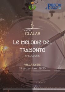 Clalab: Quarta edizione “Le melodie del tramonto” Lunedì 15 settembre | 18:30, Villa Lysis