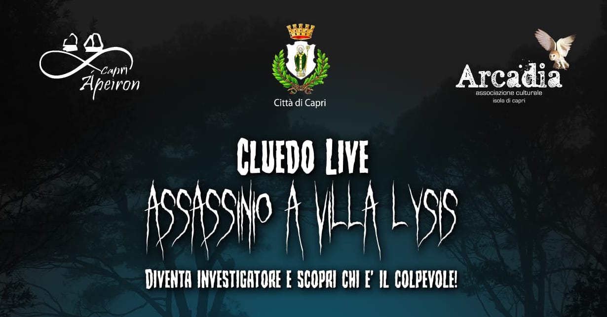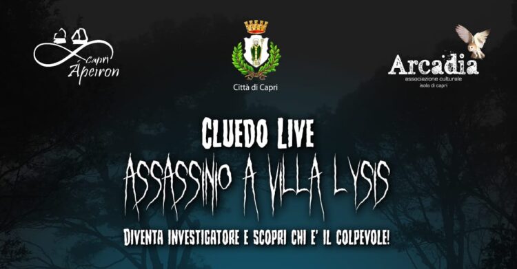 Dopo il successo dello scorso anno, l’Associazione Culturale Arcadia, in collaborazione con l’Associazione Culturale Ápeiron, ripropone “Cluedo Live – Assassinio a Villa Lysis”, evento di natura ludico-culturale realizzato con il sostegno e patrocinio della Città di Capri.