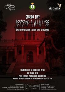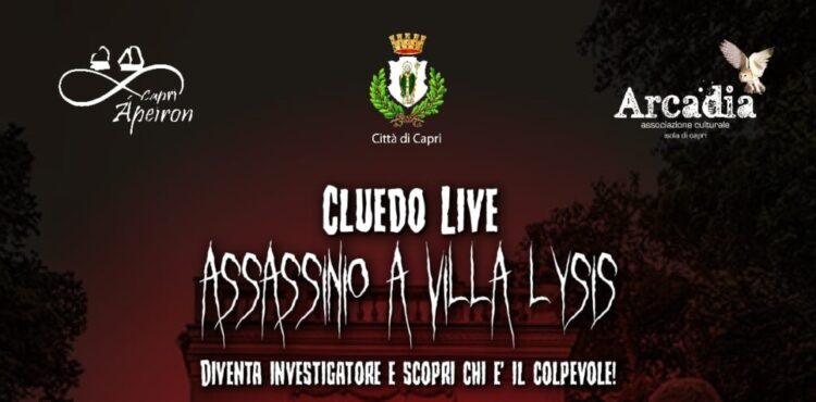 L’Associazione Culturale Arcadia, in collaborazione con l’Associazione Culturale Ápeiron, presenta “Cluedo Live – Assassinio a Villa Lysis”, evento di natura ludico-culturale realizzato con il sostegno e patrocinio della Città di Capri.