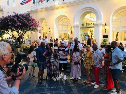 L’appuntamento con l’isola azzurra è diventato, negli ultimi anni, un vero e proprio must estivo per Magic Johnson che è sbarcato da poco a Capri dal suo mega yacht per iniziare le vacanze nel mediterraneo. Prima tappa, ovviamente Capri e la Costiera Amalfitana. Da alcuni anni l’ex cestista, oggi imprenditore sportivo di successo, sceglie Capri per festeggiare il compleanno avvolto nella atmosfera di festa e ospitalità di Villa Verde, il ristorante dei vip per eccellenza, situato nel cuore dell’isola azzurra. Ieri sera una passeggiata alle luci del tramonto con una sosta al Quisi Snack, la terrazza Caffè all’aperto del Grand Hotel Quisisana, dove il gigante Magic, insieme al rapper LL Cool J, e alcuni amici e familiari hanno posato per degli scatti ricordo con il general manager dell’Hotel Adalberto Cuomo e Antonio D’Alisa, front of House Manager del Quisisana.