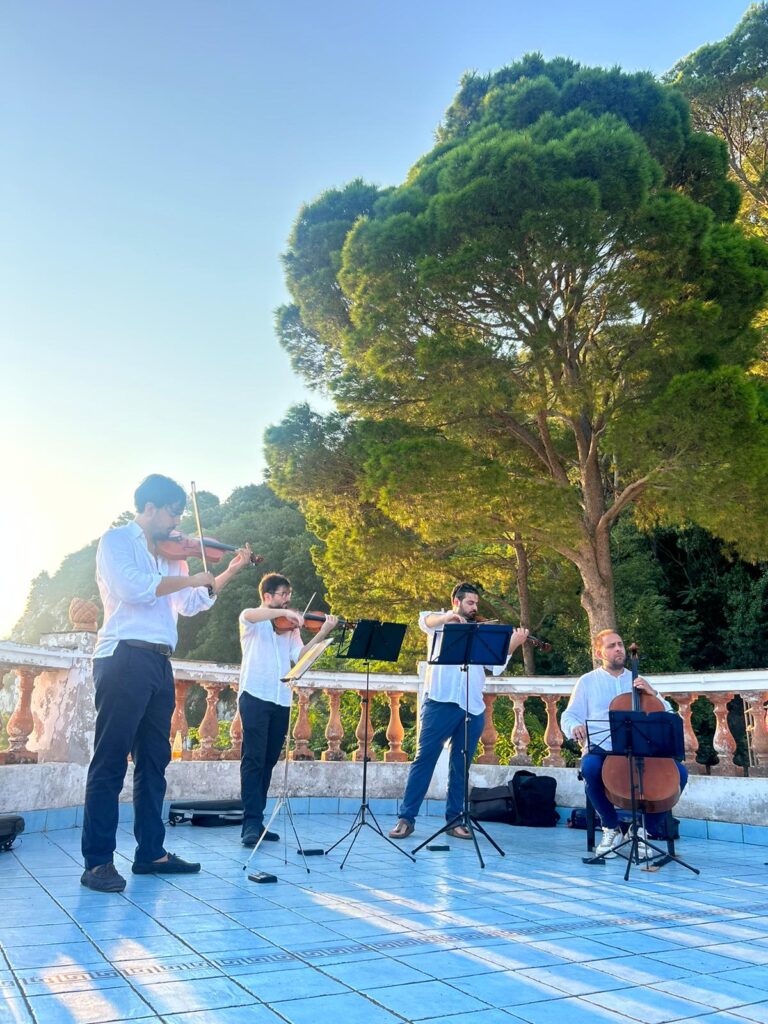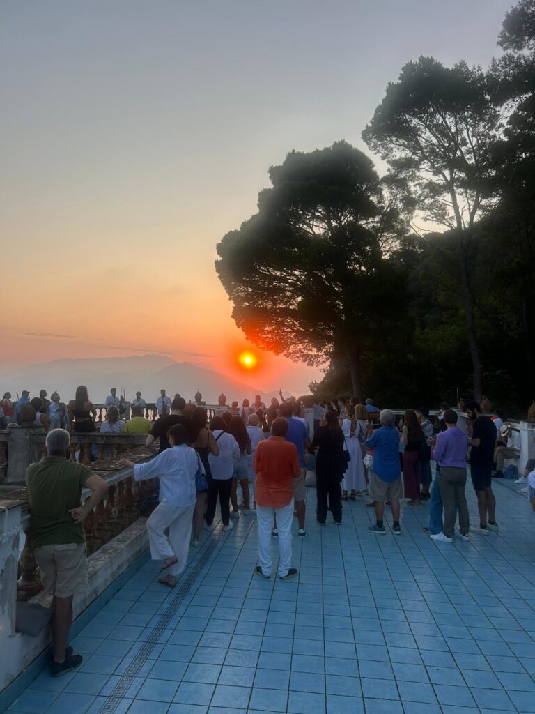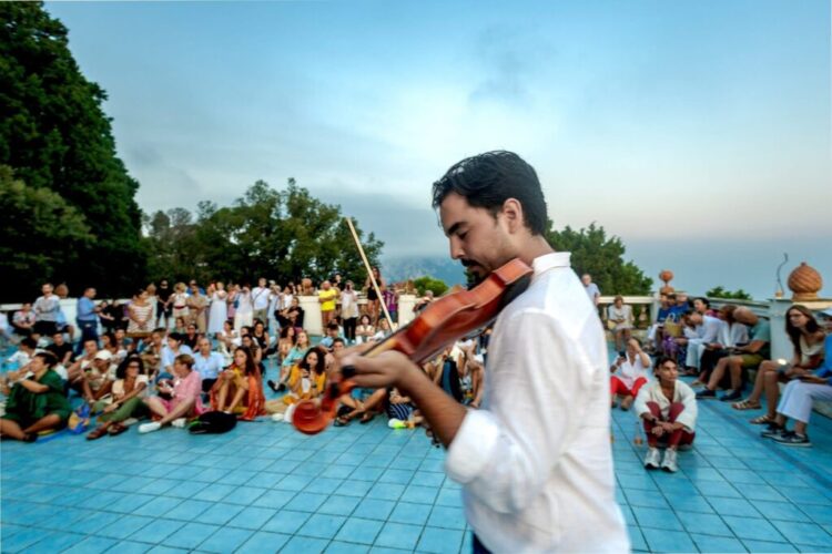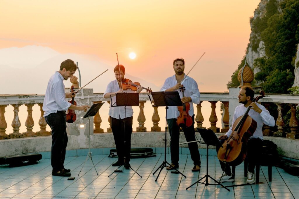 Grande partecipazione, questa mattina alle prime luci dell’alba per il Concerto all’aurora a Villa Lysis, nell’ambito della rassegna “Emozioni d’estate” promossa dalla Città di Capri. Una passeggiata emozionale, a cura del prof. Renato Esposito, nella dimora sul tetto dell’isola, casa-museo del barone Fersen. Il concerto di Riccardo Zamuner e del Sea Quartet, alla ricerca del Caprimelos, per navigare tra cielo e mare con la musica immersa nei raggi del sole nascente dalla Terra delle Sirene. La risposta di capresi e turisti è stata straordinaria. Ecco un breve video di Raffaele Mastroianni.