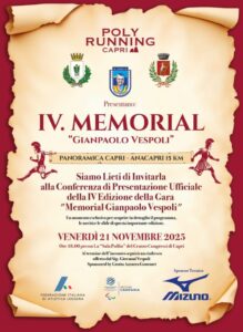 Conferenza di Presentazione Ufficiale della IV Edizione della Gara “Memorial Giampaolo Vespoli”, VENERDÌ21 NOVEMBRE 2025, Ore 18.00, presso La “Sala Pollio” del Centro Congressi di Capri