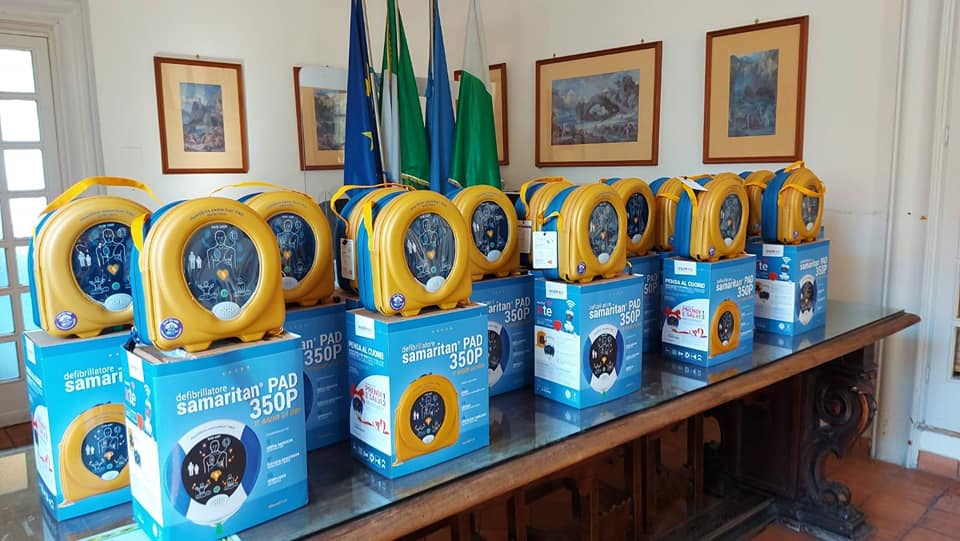 Sono stati consegnati alla presenza del Sindaco di Capri, Marino Lembo, e del Consigliere Delegato alla Protezione Civile, Bruno D’Orazi, 15 defibrillatori semiautomatici che andranno a sostituire quelli ormai in scadenza già posizionati sul territorio del Comune di Capri e rientranti nel progetto “Capri, Comune cardiopretetto”.Le nuove macchine, consegnate dalla ditta Auexde, sono di nuova generazione ed oltre ad essere ancora più efficienti e facili da usare sono dotate di batterie di lunga durata, fino a 4 anni a fronte di quelle da sostituire che hanno durata di 24 mesi; possono essere collegate ad una rete wifi che permetterà di monitorare in tempo reale,direttamente dalla centrale, lo stato di consumo delle batterie, degli elettrodi e la loro efficienza generale.Grazie poi al progetto portato avanti dalla Città Metropolitana di Napoli a tutela della salute pubblica, è stato sottoscritto un accordo di collaborazione che prevede la fornitura al Comune di Capri di 5 nuovi defibrillatori che andranno ad aggiungersi a quelli già presenti per una più ampia ed estesa copertura del territorio.Attraverso il sito istituzionale della Città di Capri sarà resa, poi, nota la mappatura completa di tutti i defibrillatori presenti sul territorio e saranno organizzati corsi di primo soccorso e uso del defibrillatore, per gli operatori pubblici e privati cittadini.