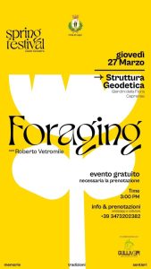 Grande successo per il festival che si è aperto domenica 23 marzo con “Teatro in Comune”, una performance artistico sensoriale che ha riscosso l’interesse del pubblico che ha partecipato alle varie fasi della rappresentazione dedicata alla poetica di Andrej Tarkowskij a cura di Paola Carbone, e che ha avuto come palcoscenico particolare gli spazi municipali della sala consiliare. Il festival di primavera continua con altro significativo evento che si terrà Giovedì 27 marzo nei Giardini della Flora Caprense dal nome “Foraging” per un percorso nella natura guidato da Luigi Esposito. Il foraging è un modo innovativo di cucinare, recuperando le tradizioni del passato e le materie prime selvatiche del territorio. Consiste nella raccolta di frutti, fiori, foglie, radici e germogli di piante spontanee edibili che poi saranno utilizzate in cucina per preparare piatti esclusivi e genuini.