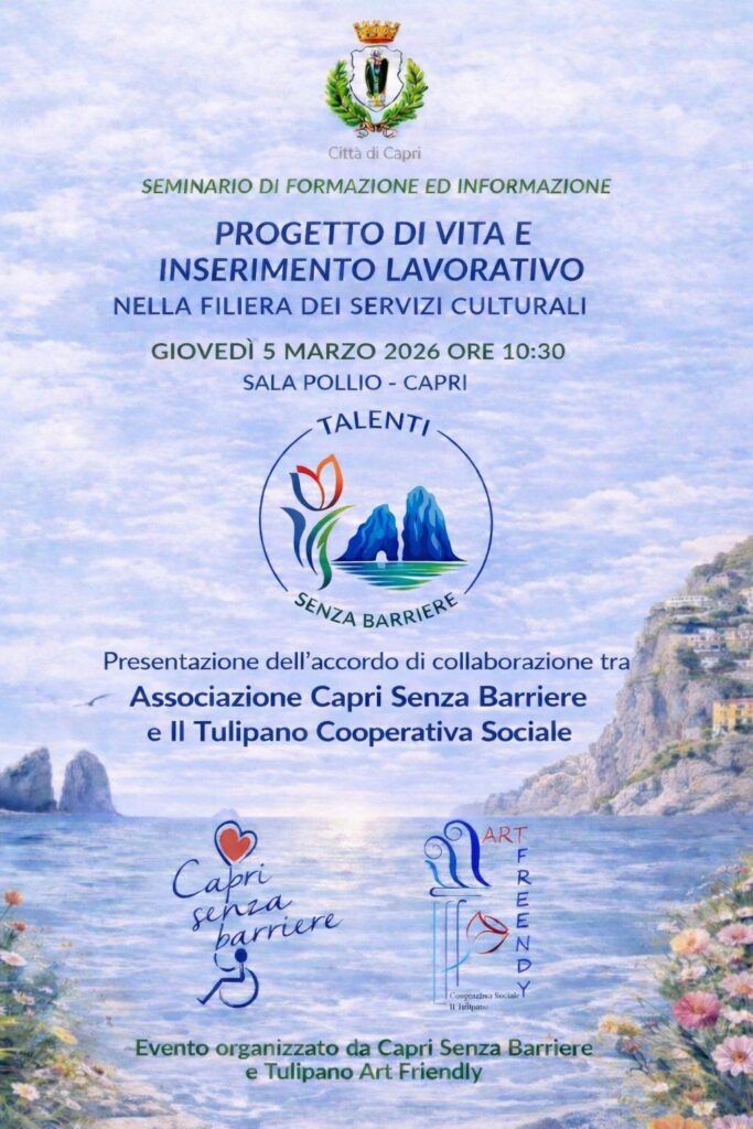 Giovedì 5 marzo 2026 alle ore 10:30, nella Sala Pollio di Capri, si terrà il convegno “Progetto di Vita e Inserimento Lavorativo nella Filiera dei Servizi Culturali”, un momento di riflessione e di impegno concreto dedicato al diritto al lavoro e alla piena partecipazione delle persone con disabilità alla vita della comunità.