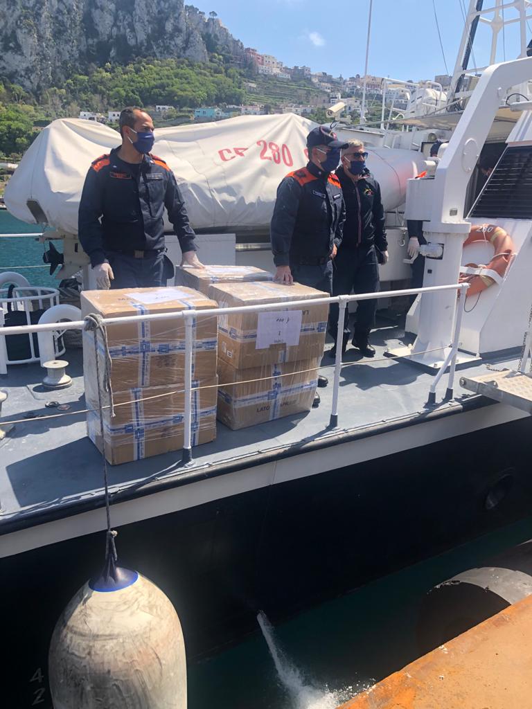 A Capri i colli contenenti circa 6.000 mascherine sono stati prese in carico sulla banchina del porto dai funzionari del Comune e dai componenti della Protezione Civile che provvederanno alla distribuzione.
