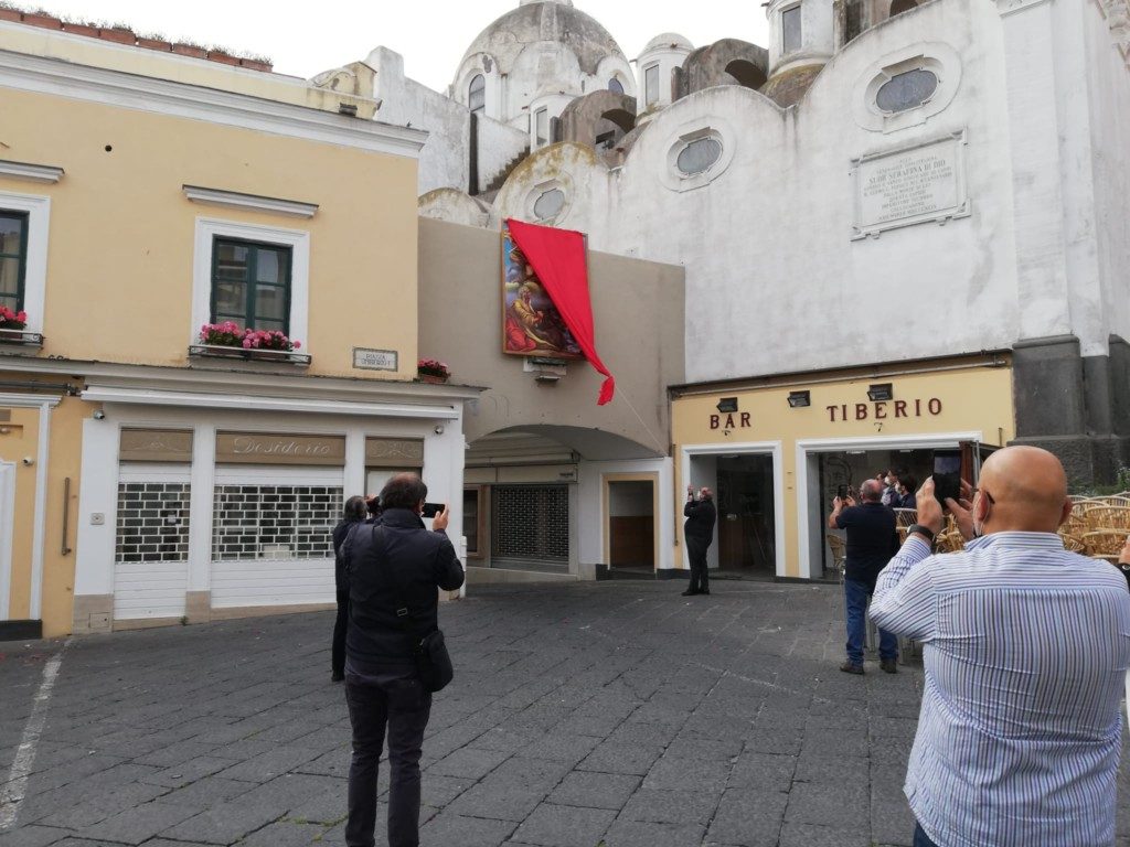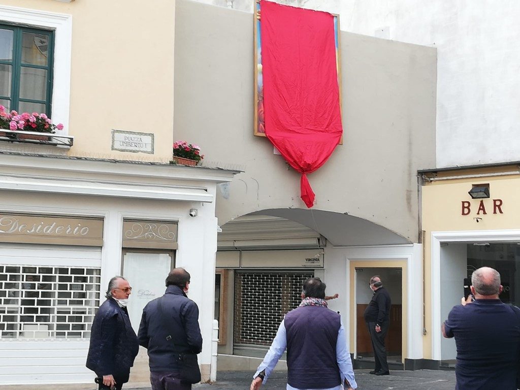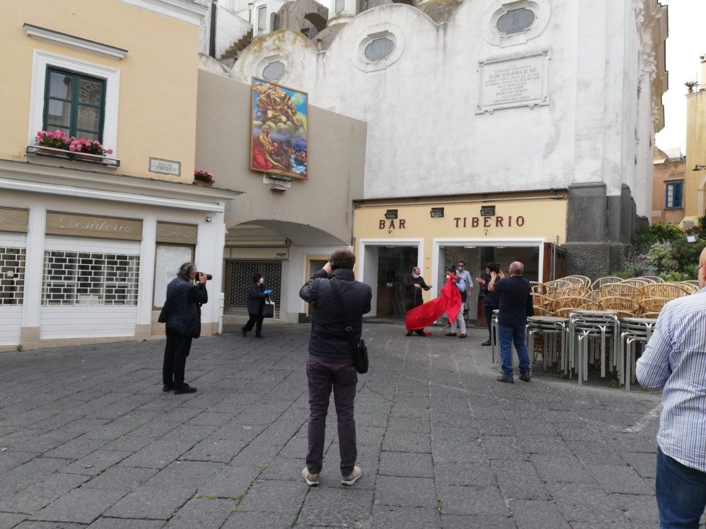 Celebrazioni a porte chiuse per San Costanzo, il patrono di Capri, che ricorre oggi 14 maggio. Le restrizioni ai festeggiamenti imposte dall’emergenza coronavirus non hanno bloccato però la rituale esposizione del quadro in piazzetta, questa mattina alle 9, ad opera di don Carmine Del Gaudio. Rintocchi di campane a festa, applausi dei pochi fedeli ed autorità, distanziati, in una piazzetta semideserta.