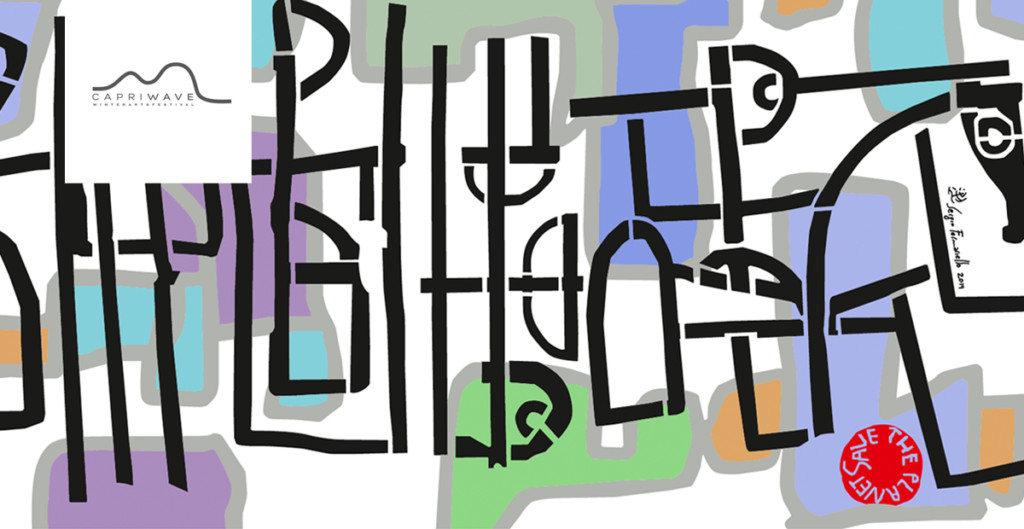 Il Manifesto di questa prima edizione del CAPRI WAVE – Winter Arts Festival è stato ideato da Sergio Fermariello, artista napoletano di fama internazionale, che, negli ultimi venti anni, ha instaurato un legame profondo con l’isola di Capri, sia personale che professionale. Notoriamente impegnato e particolarmente sensibile alle tematiche sociali e ambientali, Fermariello è stato invitato dall’Associazione Gulliver ad elaborare un segno grafico dirompente e universale che esprimesse con vigore la forza del messaggio artistico e ambientalista che il CAPRI WAVE vuole diffondere. La proposta dell’artista è una rivisitazione ad hoc del simbolo del guerriero, un segno ostinato, ripetuto, icona assoluta della sua opera, a partire dalla fine degli anni ’80, e che accompagna il lavoro di Fermariello fino alle opere più recenti, tra cui Guerrieri-scrittura (2017), entrato nella collezione del MADRE Museo di Arte Contemporanea Donnaregina. Partendo da un segno, un minuscolo pittogramma riconoscibile nella figura stilizzata di un guerriero ripetuta ossessivamente, l’artista realizza una “scrittura illimitata”, ricoprendo l’intera superficie della tela.