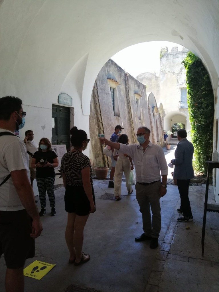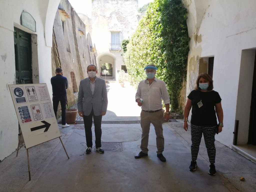 Apertura istituzionale della Certosa di San Giacomo a Capri. Come da annuncio ufficiale ieri ha riaperto i suoi antichi cancelli che introducono nel monastero trecentesco, che ospita anche il museo del pittore Karl Diefenbach. Un breve tour sotto le antiche ed artistiche volte e nello straordinario giardino è stato guidato dal direttore della Certosa Giacomo Franzese, che ha accolto i rappresentanti delle istituzioni, il Sindaco di Capri Marino Lembo, l’assessore ai beni culturali Paola Mazzina ed il delegato alla sanità Bruno D’Orazi. Il direttore che ha siglato un protocollo d’intesa con il comune, ha sottolineato che a causa del coronavirus alcuni eventi o mostre non saranno allestiti ma sono già in previsione nel mese di settembre eventi di lirica e di danza. Franzese ha poi spiegato che secondo la normativa anti-covid i visitatori dovranno accedere al sito mantenendo la distanza di sicurezza di 1,50 metri l’un l’altro e saranno obbligati ad avere la mascherina e seguire i percorsi indicati. Il numero massimo di visitatori sarà di trenta ogni ora. Il museo resterà aperto durante il periodo estivo tutti i giorni dalle 10 alle 18, ultimo ingresso alle 17.30 con chiusura il lunedì.