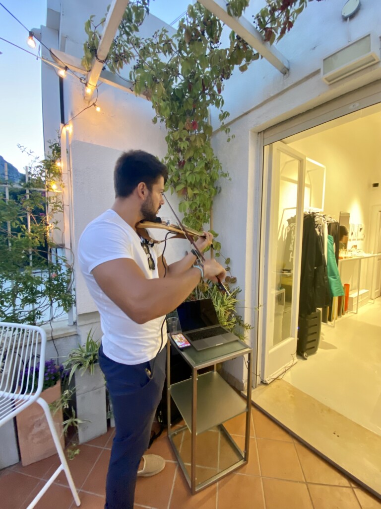 La musica live del violino elettrico suonato da Gianpaolo Tani ha arricchito la serata dal fascino glamour e modaiolo.