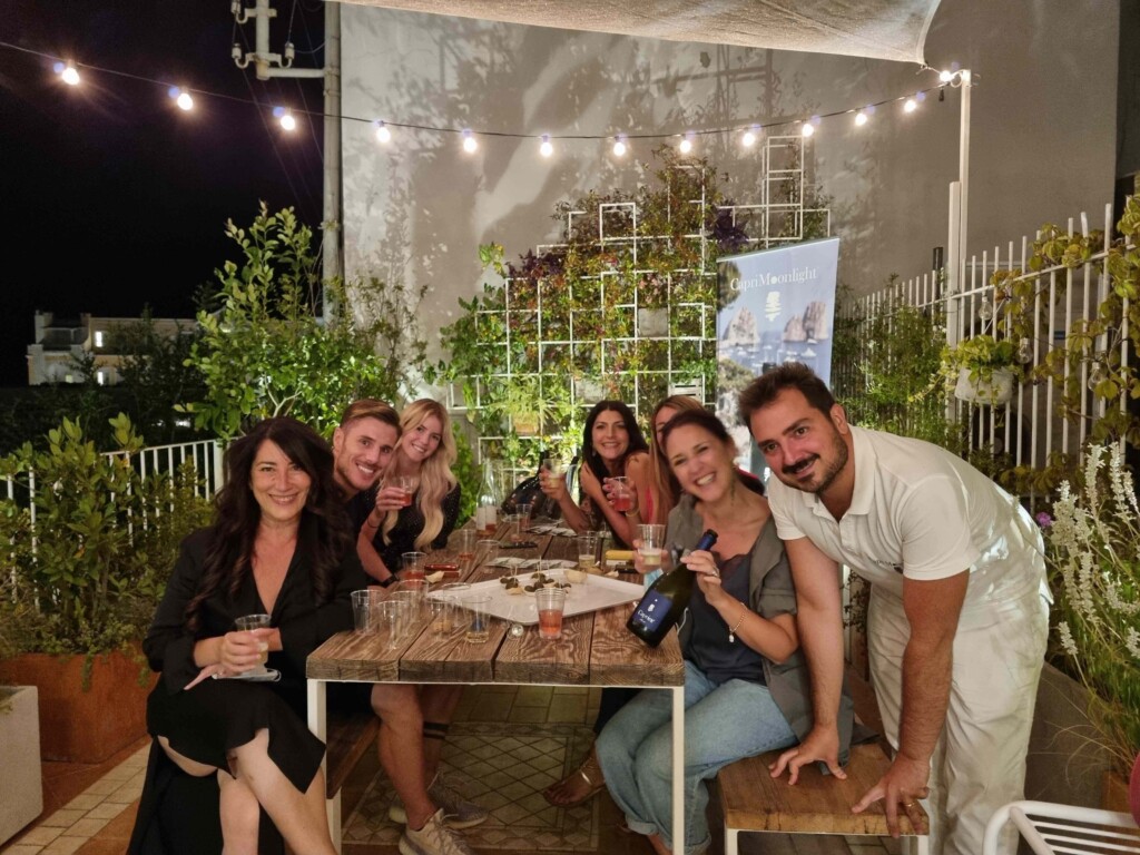 Tra gli ospiti: curiosi, appassionati di moda e design, e qualche presenza VIP con due habitué dell’Isola Veronica Maya e Sara Croce. Veronica , la bella conduttrice amica di Capri , ha brindato in compagnia del marito con un bicchiere di rosè firmato Capri Monlight sulla terrazza verde di ZOOM, in via Le Botteghe 56, dove spicca il giardino verticale disegnato appositamente per lo spazio dallo studio milanese Supercake e realizzato con l’innovativo sistema modulare Ipot.