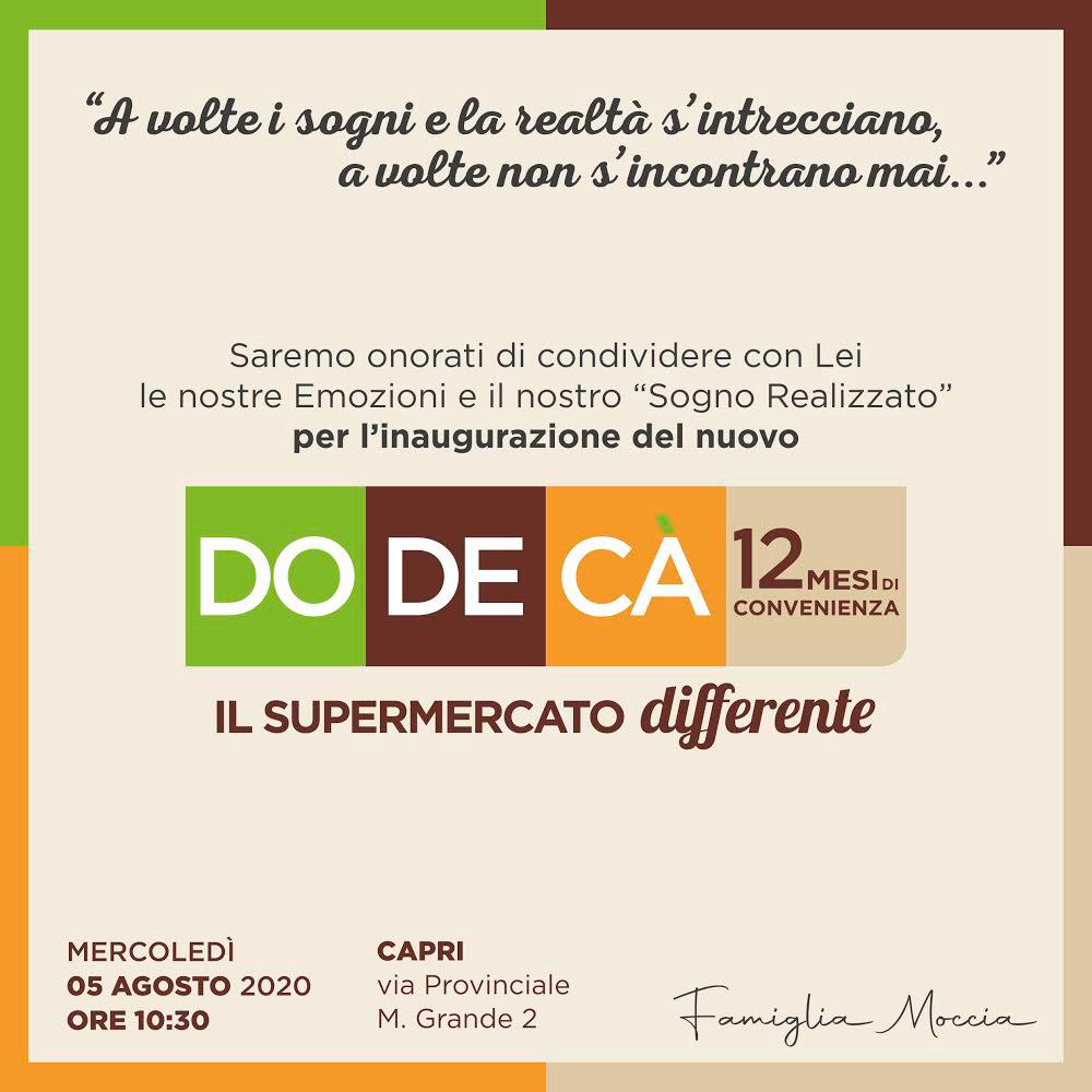 Apre i battenti mercoledì 5 Agosto a Capri, in via Marina Grande 2, il primo store Dodecà format EDLP del gruppo Multicedi. Il Punto vendita, il primo sull’isola con questa insegna, è distribuito su di una superficie di circa 700 mq e vedrà al lavoro 26 addetti alla vendita. Il nuovo store, con 7000 tra prodotti confezionati e freschi, si prefigge di esprimere un assortimento food e non food completo, ispirato al principio di una convenienza duratura nel tempo per un’esperienza di spesa differente, senza stress né “rincorsa all’offerta”, con prezzi bassi tutti i giorni.