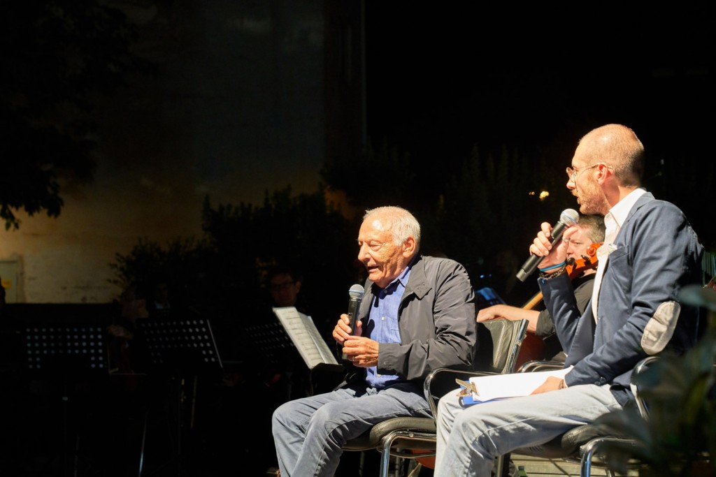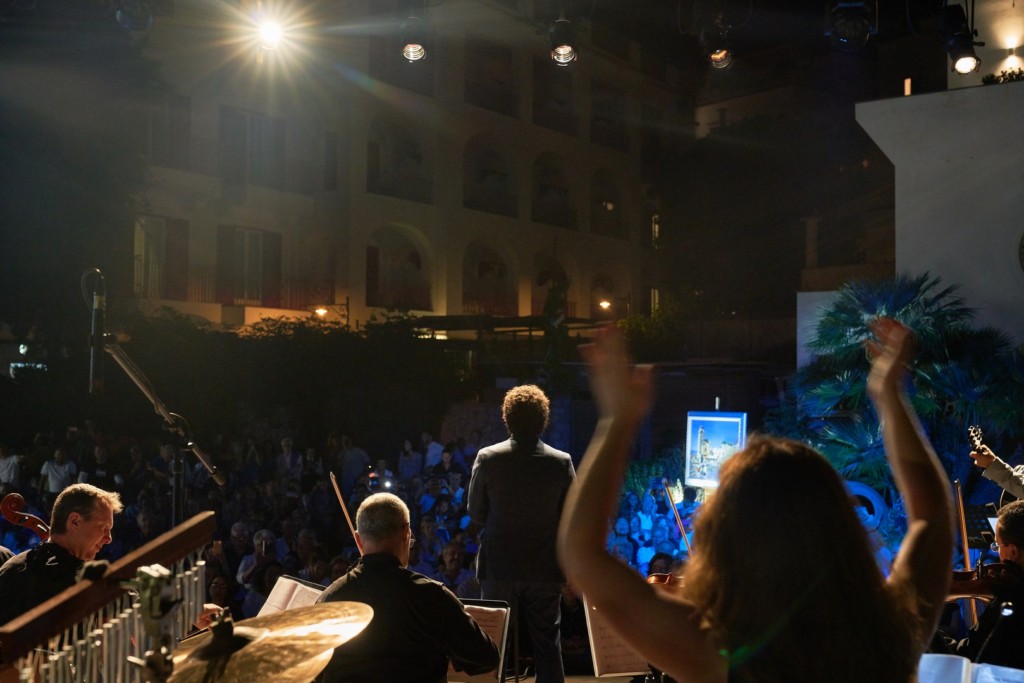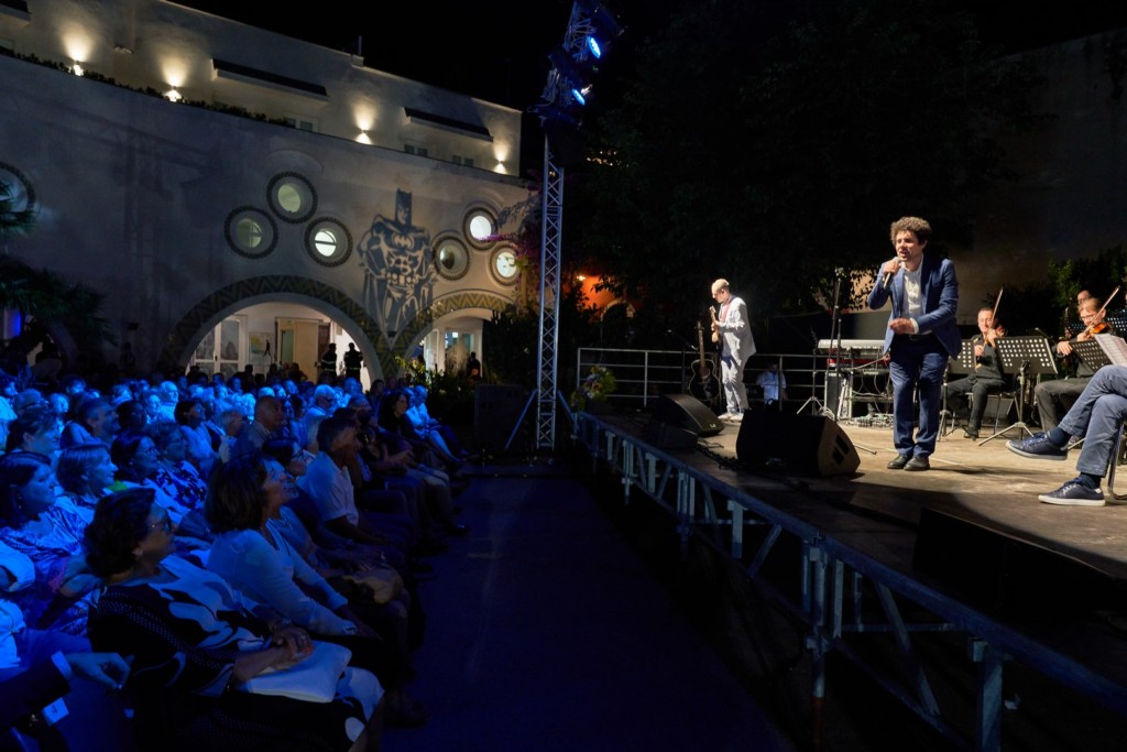 Capri. Non solo “pensieri e parole” ieri sera nella quinta en plein air dei Giardini della Flora Caprense ma vere e proprie poesie in musica. É partito infatti sulle note di “Emozioni” il concerto racconto che ha visto protagonisti per una sera a Capri il grande paroliere italiano Mogol insieme al giovane e talentuoso cantautore Ginamarco Carroccia ed una strepitosa orchestra di ben 16 elementi, tra archi, fiati, voci.