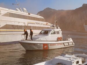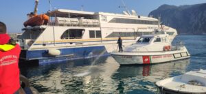 La Guardia Costiera di Capri ha effettuato stamattina un’esercitazione antincendio organizzata dall’Ufficio Circondariale Marittimo di Capri, coordinata dal Comandante della Capitaneria di Porto Tenente di Vascello Francesco Potenzieri e sulla banchina dal Luogo Tenente della Guardia Costiera Vincenzo Vitiello, che hanno coinvolto dipendenti pattuglie a terra e a mare, unitamente alle squadre dei Vigili del Fuoco, dei Carabinieri, della Polizia Municipale, della Dogna e del locale Gruppo Ormeggiatori. Personale che ha messo in opera per l’occasione tutta la propria abilità per la simulazione di un incendio divampato a bordo di un mezzo di linea, ormeggiato presso la banchina “Principale” del porto di Capri. L’esercitazione è iniziata con la ricezione a terra dell’allarme lanciato dall’equipaggio che si trovava a bordo dell’unità colpita dalle fiamme. Come da protocollo, se fosse accaduto veramente l’incendio, l’allarme di soccorso è partito immediatamente dalla Sala operativa dell’Ufficio Circondariale Marittimo di Capri, delle procedure previste dal vigente Piano antincendio. Contemporaneamente è scattato l’intervento tempestivo degli uomini e dei mezzi della Guardia Costiera e dei Vigli del Fuoco. Mentre a terra in molti si chiedevano cosa stesse accadendo sulle banchine del porto di Capri, che solo al termine delle operazioni, si sono accorti che si trattava di un’esercitazione di servizio per essere pronti in caso di emergenza. Fondamentale è stata la presenza in mare della motovedetta CP858 della Guardia Costiera, unità navale in servizio a Capri dedicata al soccorso in mare, equipaggiata con un moderno impianto antincendio. Tutto il personale marittimo impegnato nell’attività in mare ha portato a termine, nei tempi previsti, le operazioni di spegnimento del principio di incendio e successiva messa in sicurezza dell’unità interessata e della banchina. Quella di stamattina è la seconda simulazione dell’anno 2023 e va a completare il ciclo annuale di attività addestrative, volte a preparare il personale alla molteplicità di scenari che possono presentarsi in caso di emergenza in ambito portuale. Le esercitazioni periodiche sono utili ad addestrare e preparare il personale marittimo e non quando si presentano casi simili come quello di un incendio improvviso a bordo dei natanti o che possono accadere all’interno dell’area portuale. Al termine dell’operazione durata circa un’ora i militari della Guardia Costiera, i Vigili del Fuoco e gli operatori del porto sono rientrati con enorme soddisfazione per aver mostrato anche al piccolo gruppetto di folla incuriosita che si era fermata per assistere all’insolita performance che si è avuta all’interno dello scalo marittimo del porto commerciale di Capri.