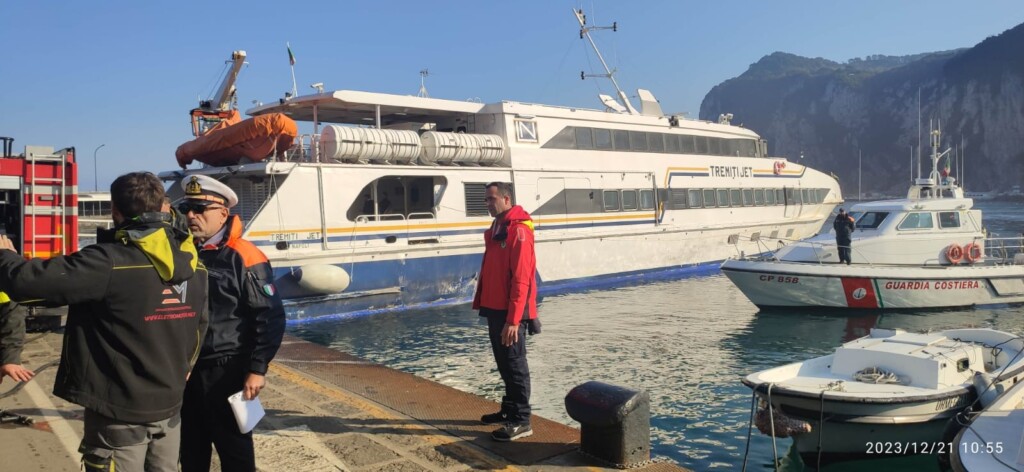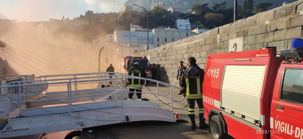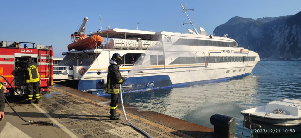 La Guardia Costiera di Capri ha effettuato stamattina un’esercitazione antincendio organizzata dall’Ufficio Circondariale Marittimo di Capri, coordinata dal Comandante della Capitaneria di Porto Tenente di Vascello Francesco Potenzieri e sulla banchina dal Luogo Tenente della Guardia Costiera Vincenzo Vitiello, che hanno coinvolto dipendenti pattuglie a terra e a mare, unitamente alle squadre dei Vigili del Fuoco, dei Carabinieri, della Polizia Municipale, della Dogna e del locale Gruppo Ormeggiatori. Personale che ha messo in opera per l’occasione tutta la propria abilità per la simulazione di un incendio divampato a bordo di un mezzo di linea, ormeggiato presso la banchina “Principale” del porto di Capri. L’esercitazione è iniziata con la ricezione a terra dell’allarme lanciato dall’equipaggio che si trovava a bordo dell’unità colpita dalle fiamme. Come da protocollo, se fosse accaduto veramente l’incendio, l’allarme di soccorso è partito immediatamente dalla Sala operativa dell’Ufficio Circondariale Marittimo di Capri, delle procedure previste dal vigente Piano antincendio. Contemporaneamente è scattato l’intervento tempestivo degli uomini e dei mezzi della Guardia Costiera e dei Vigli del Fuoco. Mentre a terra in molti si chiedevano cosa stesse accadendo sulle banchine del porto di Capri, che solo al termine delle operazioni, si sono accorti che si trattava di un’esercitazione di servizio per essere pronti in caso di emergenza. Fondamentale è stata la presenza in mare della motovedetta CP858 della Guardia Costiera, unità navale in servizio a Capri dedicata al soccorso in mare, equipaggiata con un moderno impianto antincendio. Tutto il personale marittimo impegnato nell’attività in mare ha portato a termine, nei tempi previsti, le operazioni di spegnimento del principio di incendio e successiva messa in sicurezza dell’unità interessata e della banchina. Quella di stamattina è la seconda simulazione dell’anno 2023 e va a completare il ciclo annuale di attività addestrative, volte a preparare il personale alla molteplicità di scenari che possono presentarsi in caso di emergenza in ambito portuale. Le esercitazioni periodiche sono utili ad addestrare e preparare il personale marittimo e non quando si presentano casi simili come quello di un incendio improvviso a bordo dei natanti o che possono accadere all’interno dell’area portuale. Al termine dell’operazione durata circa un’ora i militari della Guardia Costiera, i Vigili del Fuoco e gli operatori del porto sono rientrati con enorme soddisfazione per aver mostrato anche al piccolo gruppetto di folla incuriosita che si era fermata per assistere all’insolita performance che si è avuta all’interno dello scalo marittimo del porto commerciale di Capri.