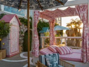 L’allestimento firmato Dior, in perfetto equilibrio tra design e paesaggio, accoglie i visitatori con le iconiche fantasie Toile de Jouy, reinventate in delicate nuance estive. Tra un piatto di ricci di mare e un brindisi al tramonto, si scopre una capsule collection luminosa e femminile: parei leggeri, sandali intrecciati e borse da sogno.