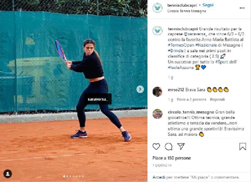Un risultato che regala grande soddisfazione personale all’atleta e all’intero movimento tennistico caprese confortato anche dalle belle parole che proprio i padroni di casa del Circolo Tennis Mesagne hanno indirizzato alla Aversa dai propri account social: “Gran bella giocatrice!!! Ottima tecnica e tenacia da vendere… non ultima una grande sportività! Bravissima Sara, ad maiora!”.