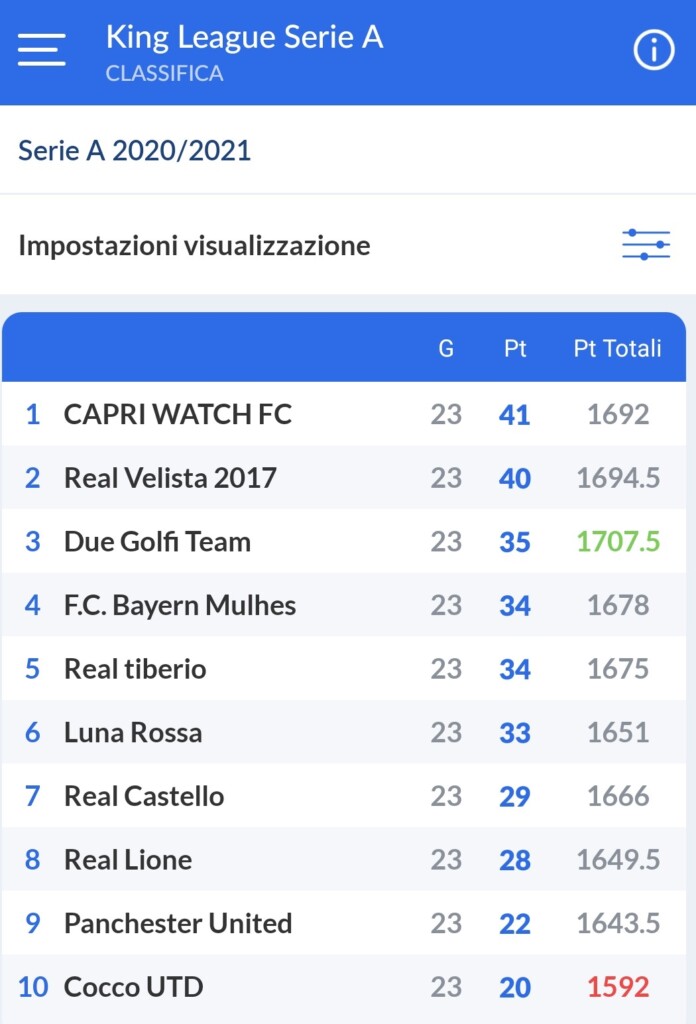 Quest ultima sta lottando in modo serrato per rimanere in Serie A. Per salvarsi senza l’appendice degli spareggi deve rimanere davanti al Real Lione che in questo turno le ha prese da Cocco Utd, fanalino di coda.