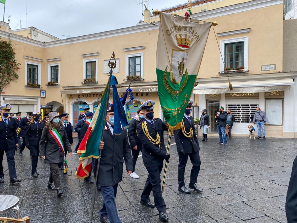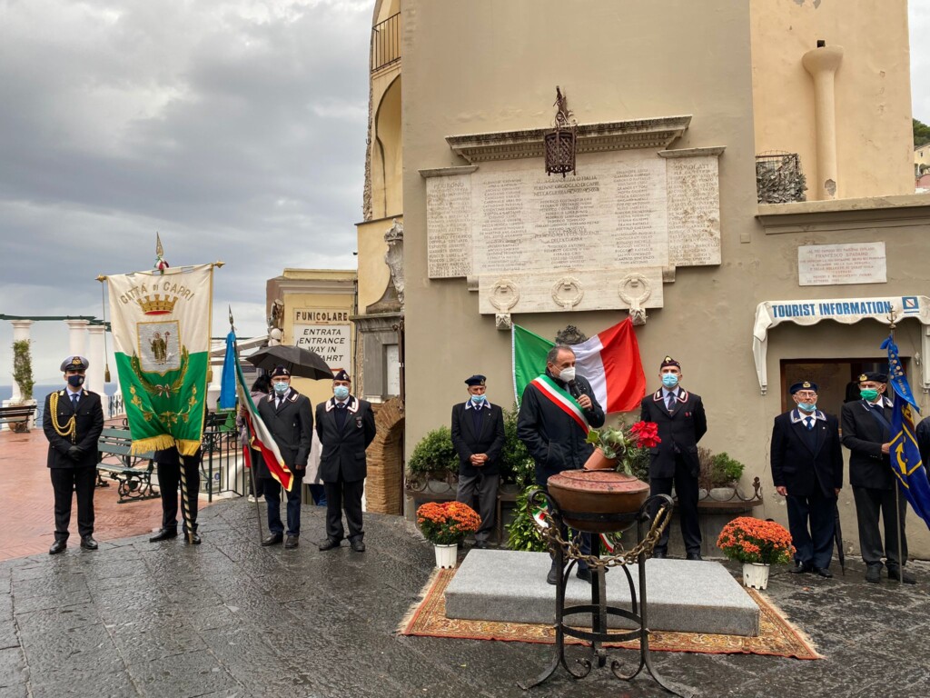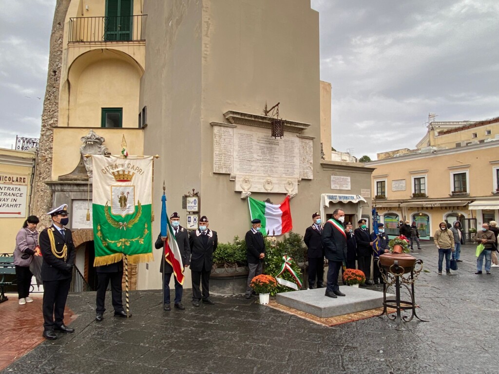 Nella piazzetta di Capri con una lieve pioggerellina che reso più melanconica la scena si è tenuta la cerimonia del 4 novembre 2021 dov’ è stata celebrata la festa dell’ Unità Nazionale , delle Forze Armate e il 103° Anniversario della fine della Grande Guerra. L’ isola di Capri ha voluto ricordare questa data in collaborazione con associazioni Nazionali Carabinieri – Combattenti e Reduci – Marinai d’ Italia isola di Capri. La cerimonia si è aperta con l’ arrivo della banda musicale a Marina Grande dove si sono radunati i partecipanti. Sempre a Marina grande si è svolta l’ alza bandiera al Monumento dedicato ai Marinai d’ Italia, che è terminato poi con gli onori ai Caduti e il lancio della corona in mare.
