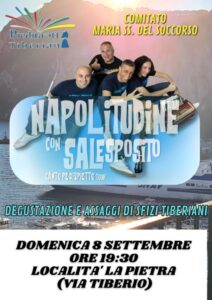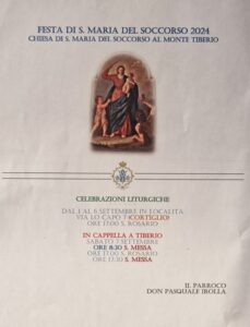 Come per gli anni scorsi, domenicaa 8 settembre alle ore 19.30, a Tiberio in località La Pietra, si terrà la Festa in onore di Santa Maria Santissima del Soccorso. Concerto dei Napolitudine con degustazione e assaggi di sfizi Tiberiani.