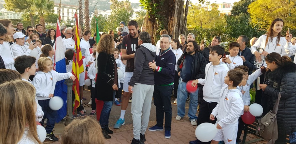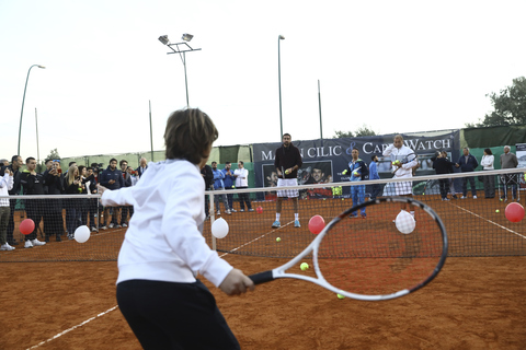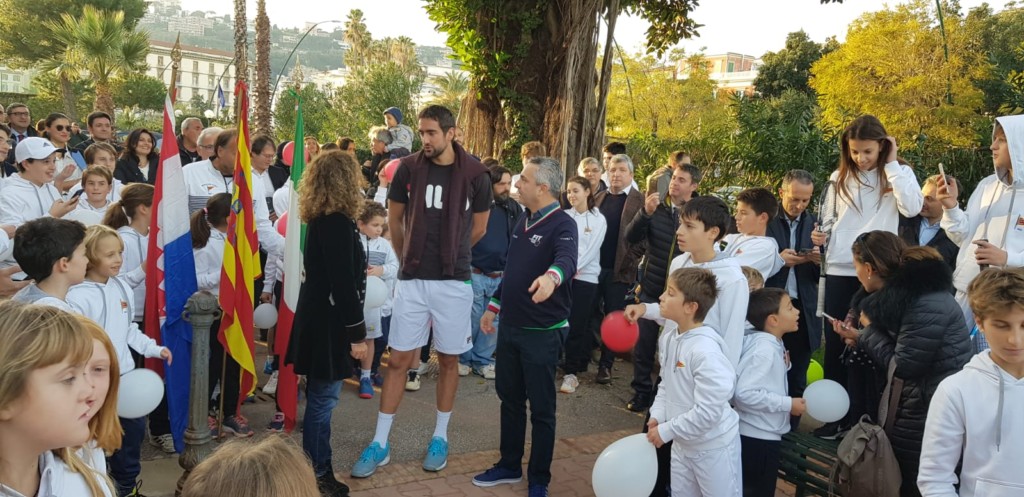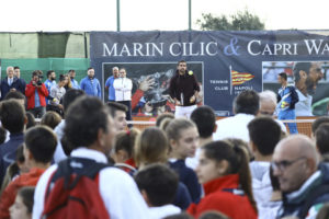 Alle 16 in punto il campione di tennis Marin Cilic, testimonial di Capri Watch, reduce della vittoria in Coppa Davis ha varcato il cancello del Tennis Club Napoli, accolto dal Presidente Riccardo Villari, dal Presidente del Comitato Regionale Campano FIT, Virginia Di Caterino, dal CEO di Capri Watch Silvio Staiano e da un coro trionfante di centinaia di allievi delle scuole tennis della Campania con i loro maestri, che hanno fatto volare in cielo i palloncini con i colori della bandiera della Croazia in onore del grande atleta croato.