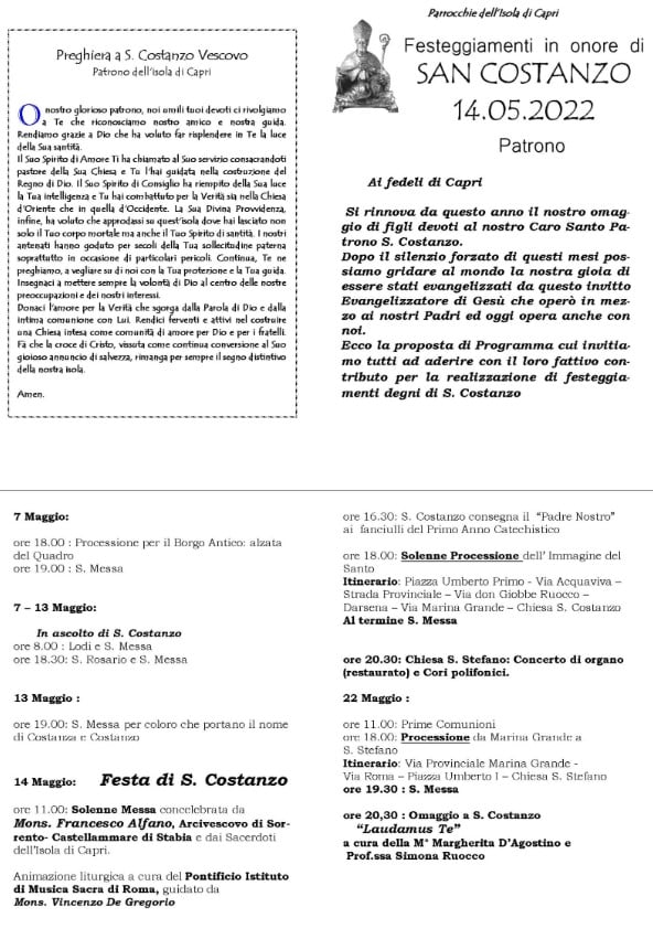 Festeggiamenti in onore di San Costanzo, ecco il programma