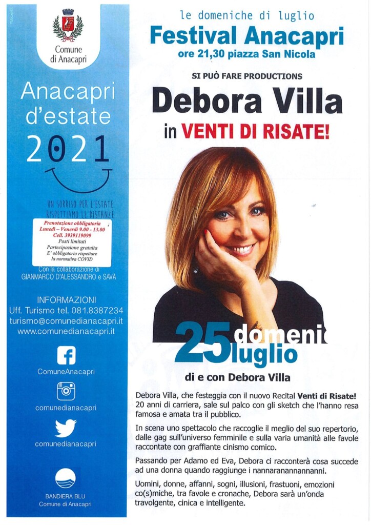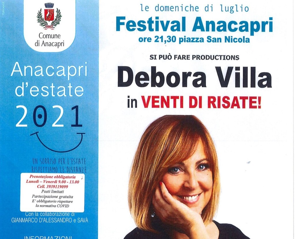 Festival Anacapri, domenica 25 luglio con Debora Villa in “Venti di risate!”