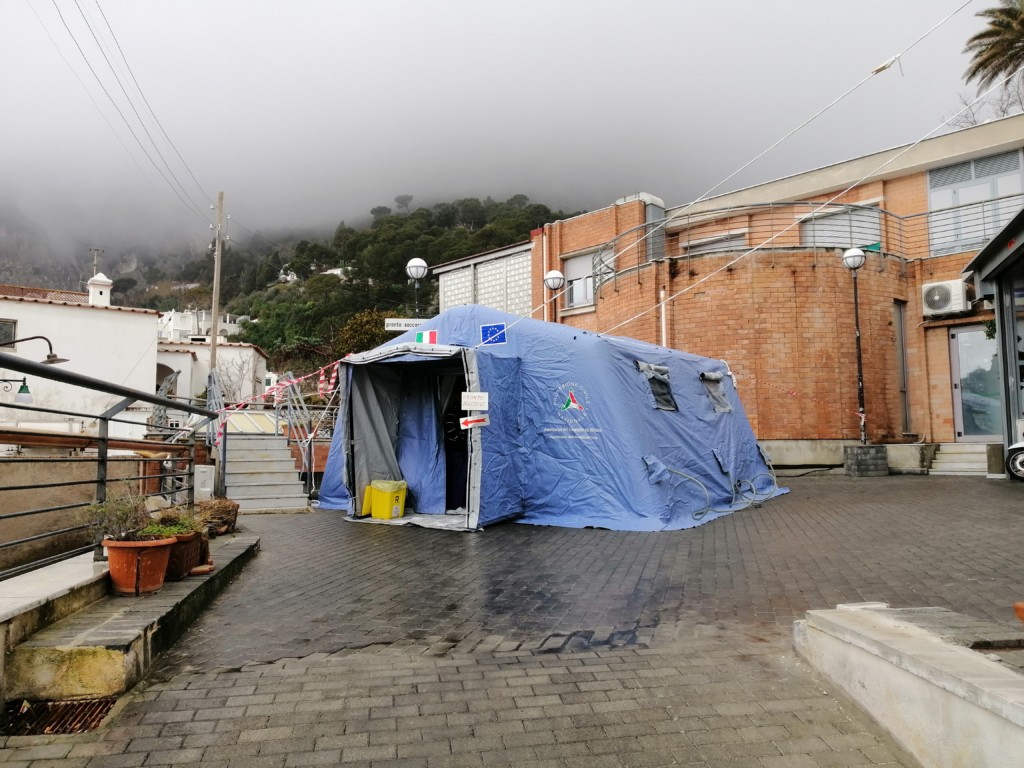Da qualche giorno è stata montata anche a Capri, presso l’ospedale Capilupi, la tenda della protezione civile, atta a svolgere funzione di pre-triage, dedicata appunto ai casi sospetti di Coronavirus. Tutto qua. Per cui un sospetto viene per prima cosa accolto in quella tenda (nella foto).